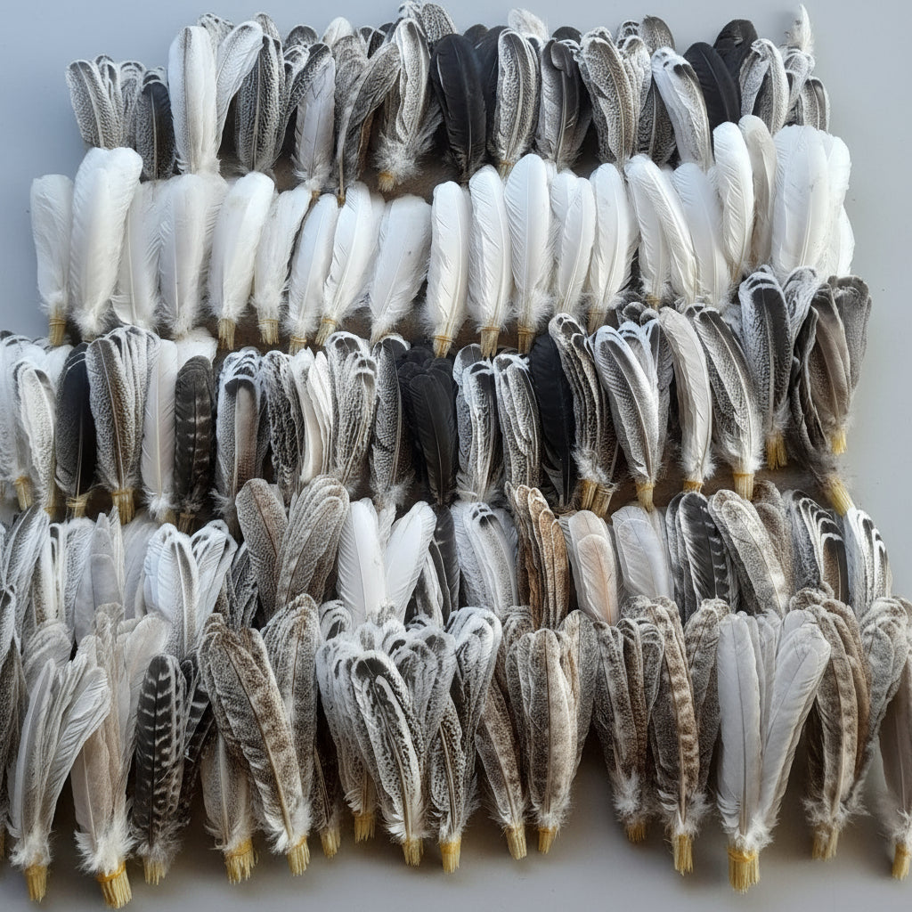 See pictures of actual feathers buyer will recieve. I do not use stock photos. I take new pictures of every lot of feathers listed so the buyer can see what they are getting.These are not dyed, this is thier natural color.